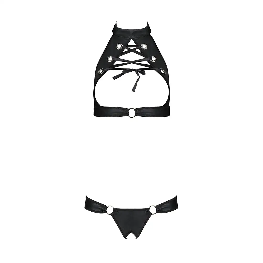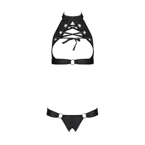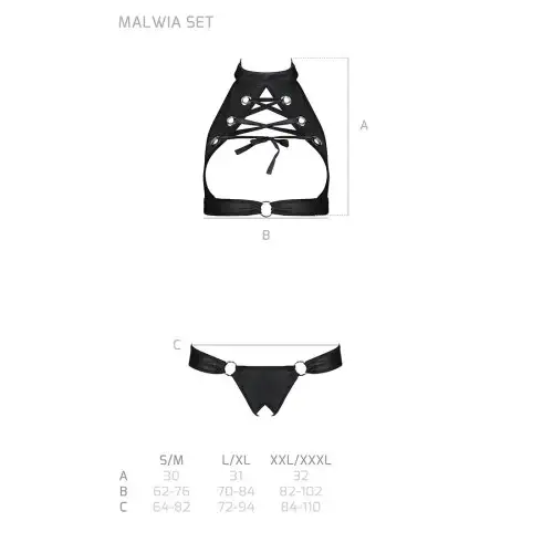 Комплект Passion Malwia с открытым бюстгальтером черного цвета XXL/XXXL станет прекрасным дополнением к вашей коллекции нижнего белья. Этот комплект из высококачественной экокожи состоит из топа и трусиков с эффектной шнуровкой.