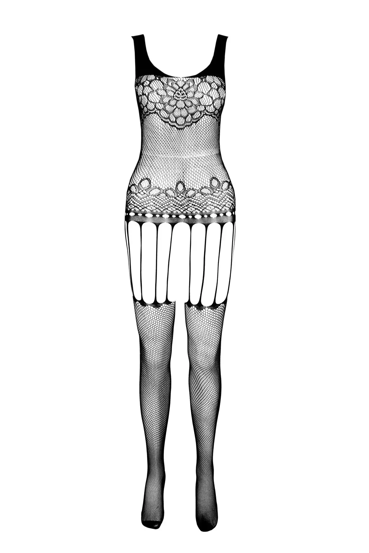 Бодистокинг Passion ECO BS001 One Size black, с доступом, имитация подвязок, флористический декор