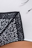 Аккуратные чашечки с черным ажуром и ленточкой невероятно аппетитно выделяют формы груди. Корсетная шнуровка в виде треугольника обворожительно сексуальная. Она визуально уменьшает животик и увеличивает грудь. А бантик внизу завязки добавляет романтичности и женственности. Вырезы на талии уменьшают ее объем, делая Вас еще изящнее. Такие маленькие хитрости - а эффект непревзойденный!