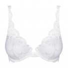 Белый цвет - цвет нежности и чистоты, делает бюстгальтер невероятно женственным и изящным. Эластичные чаши придают груди роскошную соблазнительную форму. Их дизайн в виде лепестков эротично выделяет бюст, а кокетливый бантик нежно завершает линию декольте. Эротическое изящное кружево соблазнит Вашего мужчину, сексуально выделив грудь. Оно продолжает обольстительную линию и доходит до самых плеч.